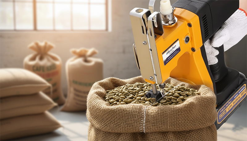 Đặc biệt, với bao cà phê làm từ PP dệt hoặc giấy Kraft nhiều lớp, có lớp lót chống ẩm — lực khâu phải đủ mạnh để xuyên qua các lớp mà không làm hỏng mép bao.