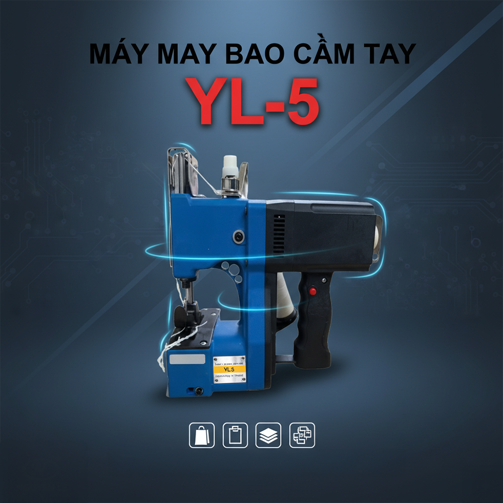 Máy bao cầm tay YL-5 chuyên may miệng bao bì nhanh, chắc; phù hợp gạo, cà phê, thức ăn chăn nuôi, phân bón, vật liệu xây dựng… Thiết kế nhỏ gọn, dễ vận hành, giá hợp lý cho hộ gia đình và cơ sở sản xuất vừa & nhỏ.